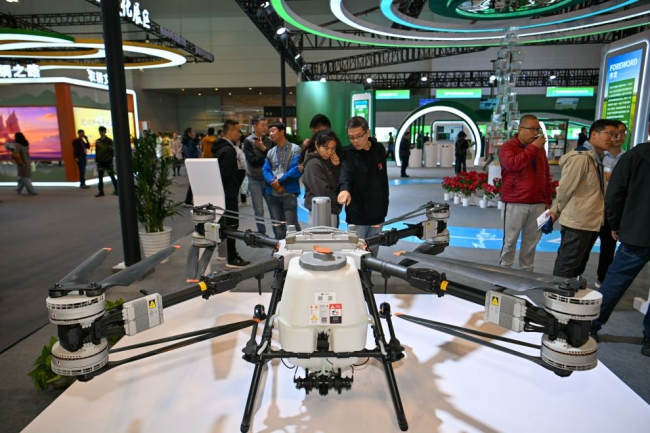 10月17日,观众在农业科技展区参观。新华社记者 孙凡越 摄