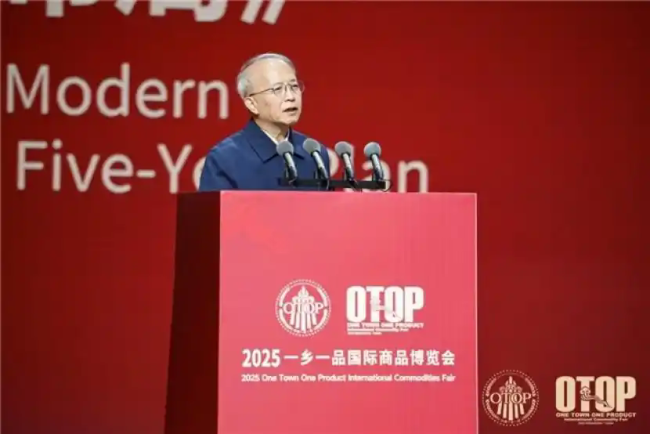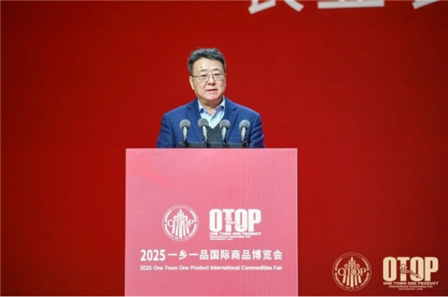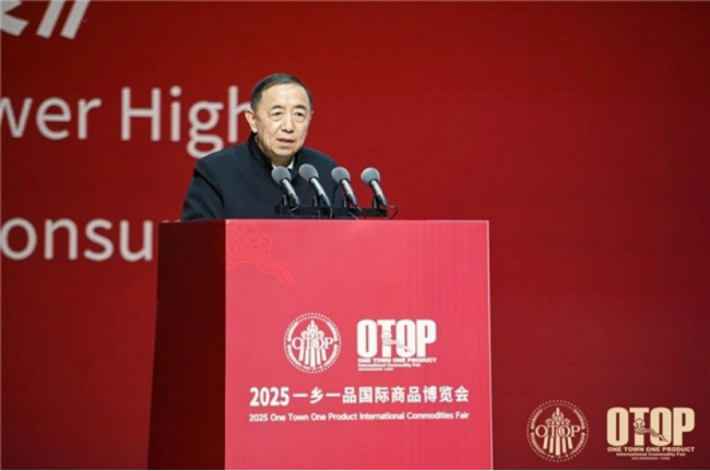 随后,中国民族贸易促进会会长蓝军宣布2025一乡一品国际商品博览会启幕。