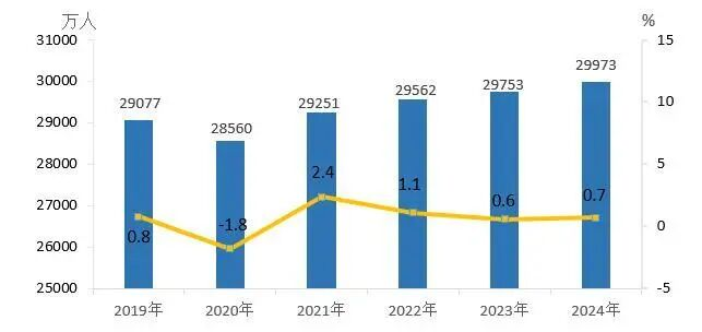 全国农民工规模及增速。数据来源:国家统计局