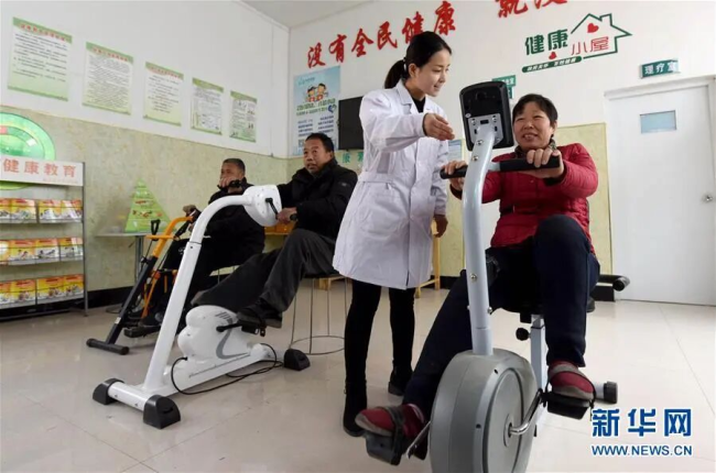 在河北省临西县周楼村,村民在“健康小屋”内锻炼(2018年12月29日摄)。新华社记者朱旭东摄