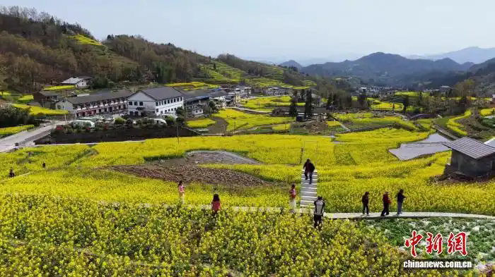 中新网陕西汉阴3月25日电 (杨英琦)春和景明,梯田“流金”。陕西省安康市汉阴县漩涡镇凤堰梯田油菜花目前进入盛花期,层层梯田满目金黄,大批游客慕名前来踏青赏花。